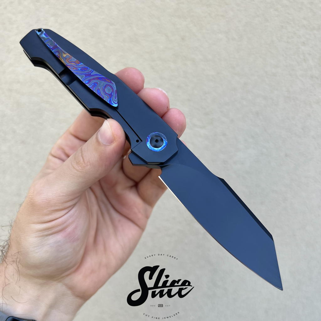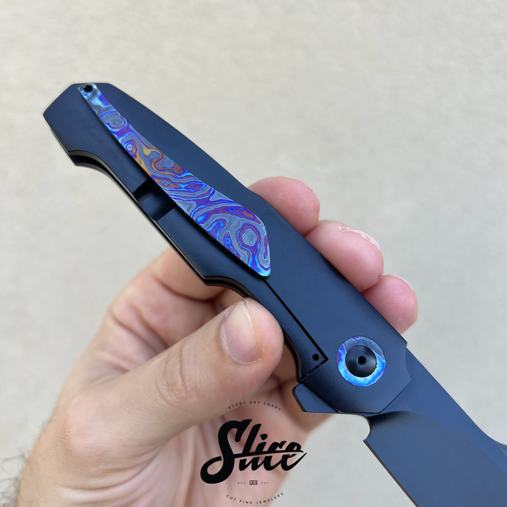 Pivot: cerakoted titanium with black timascus collars