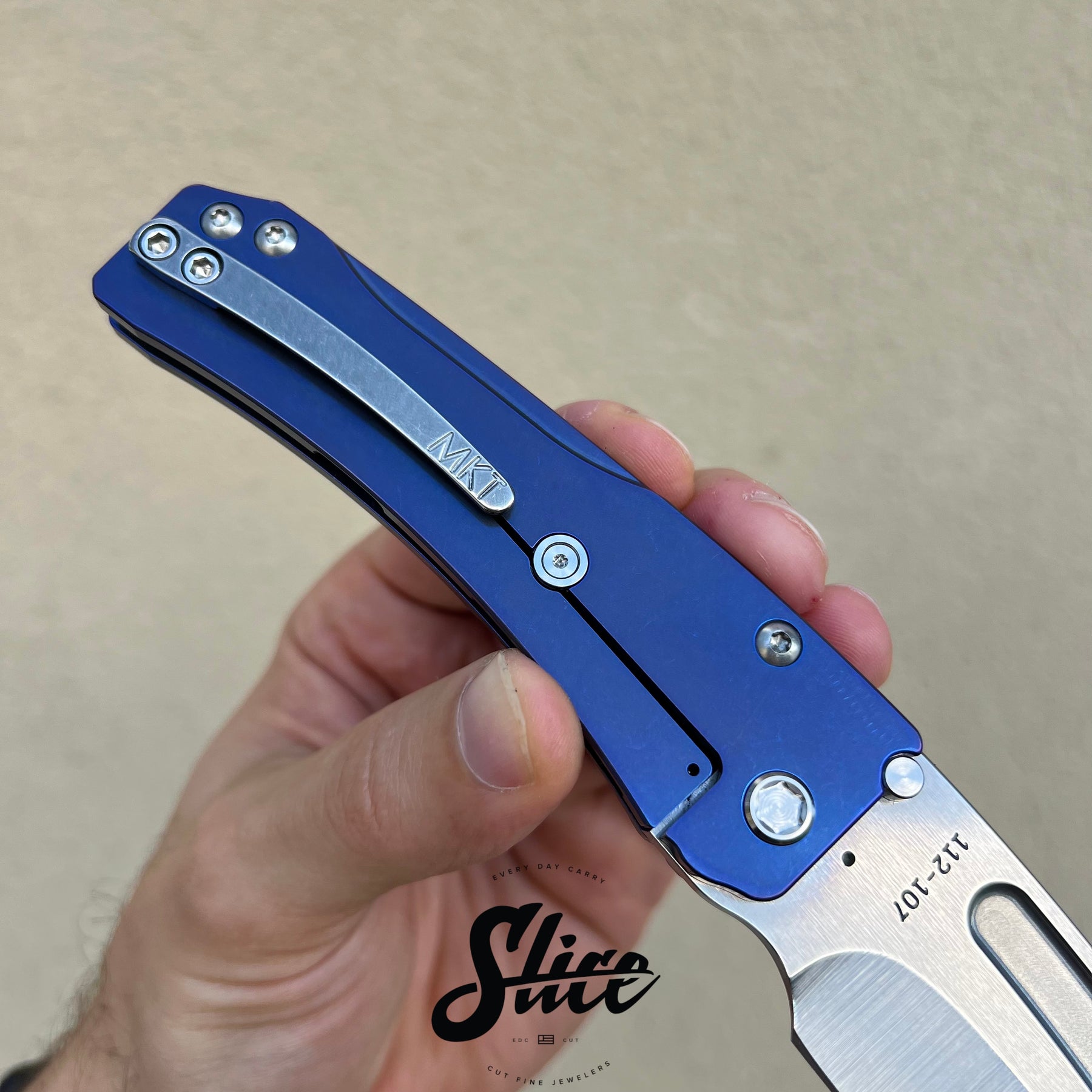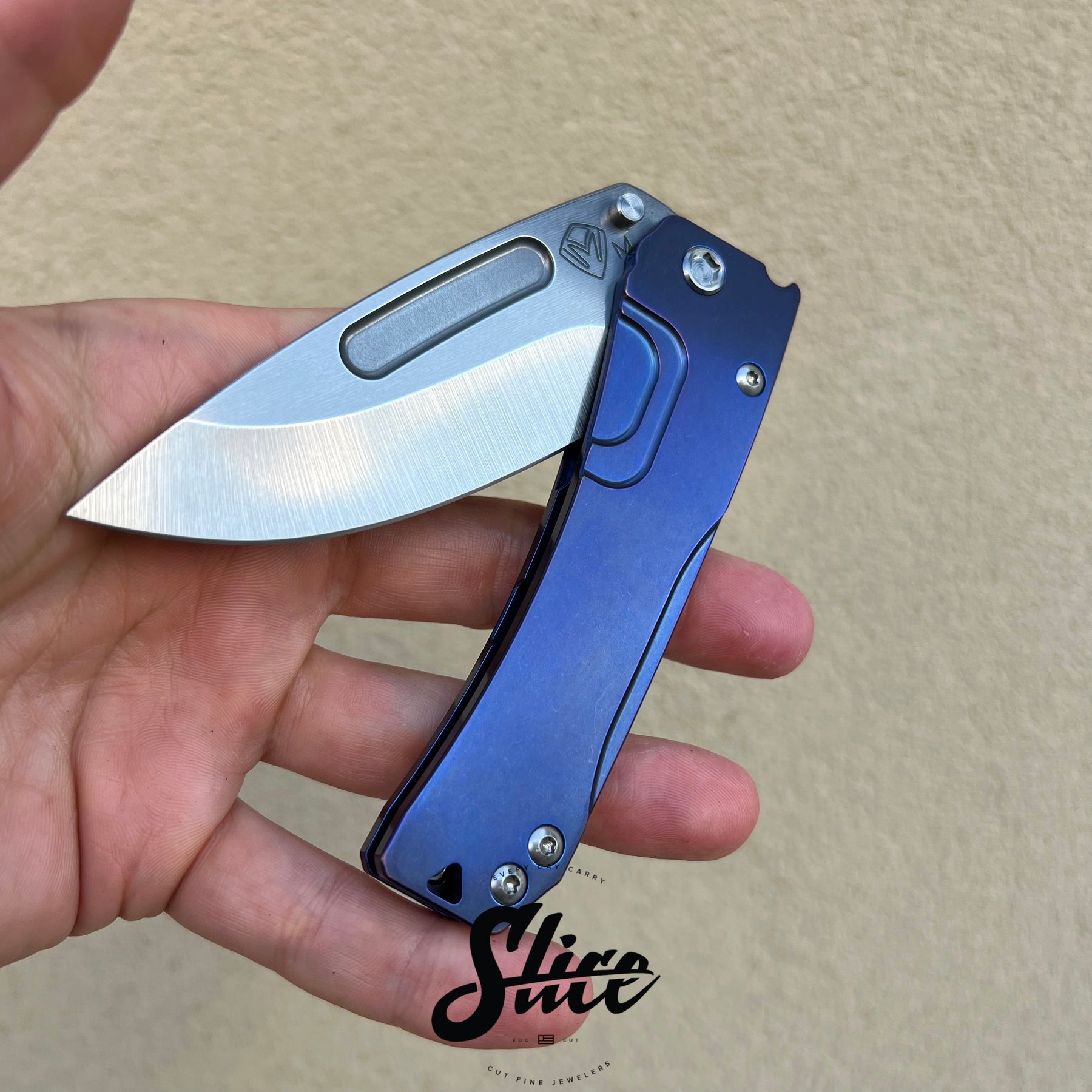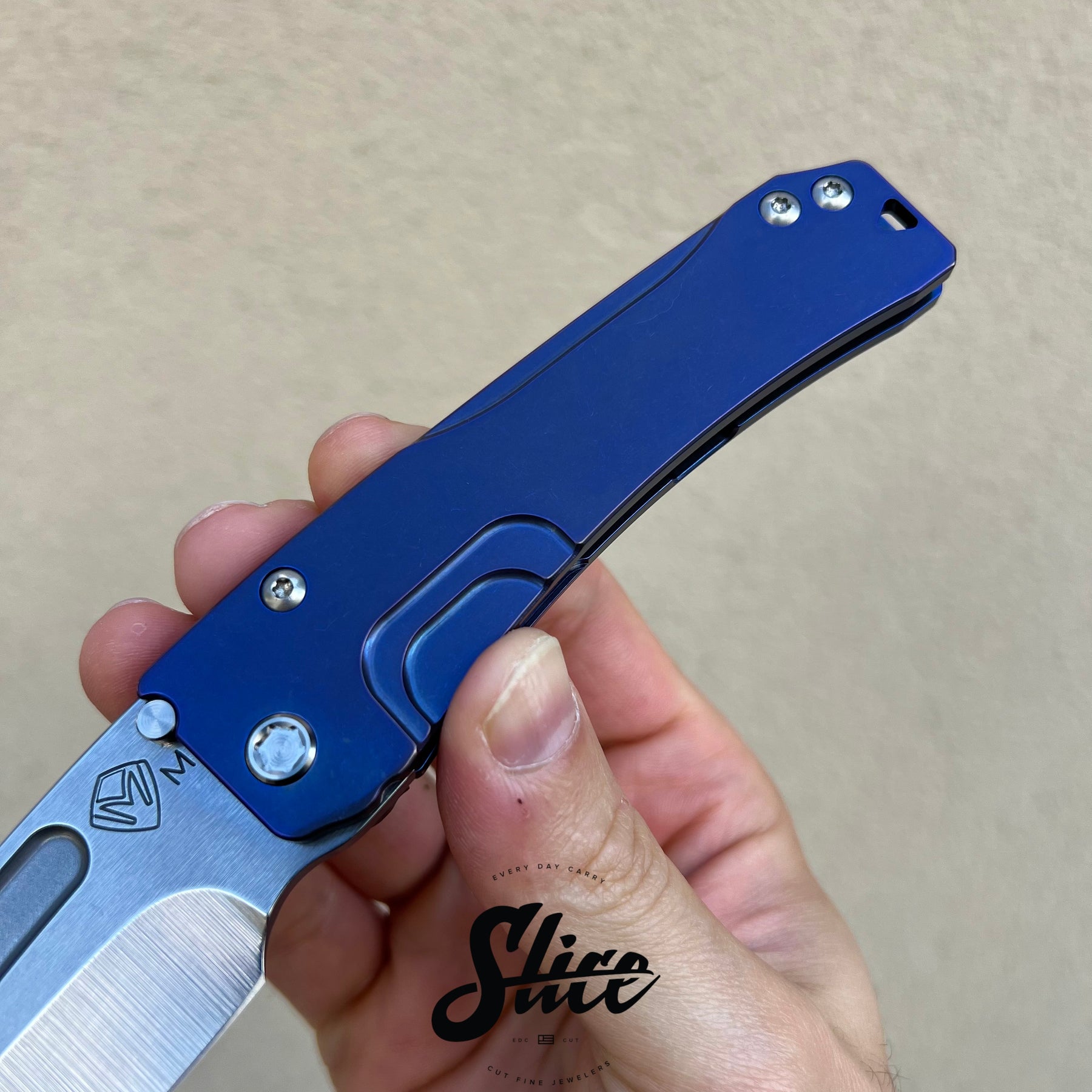 Scales/Handle: milled tumbled and anodized titanium