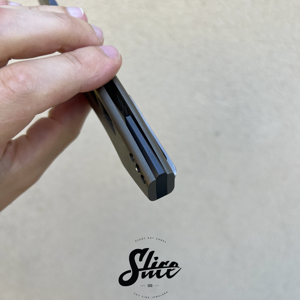Scales/Handle: 3D machined titanium with tumbled and anodized finishes and Michaels signature venting
