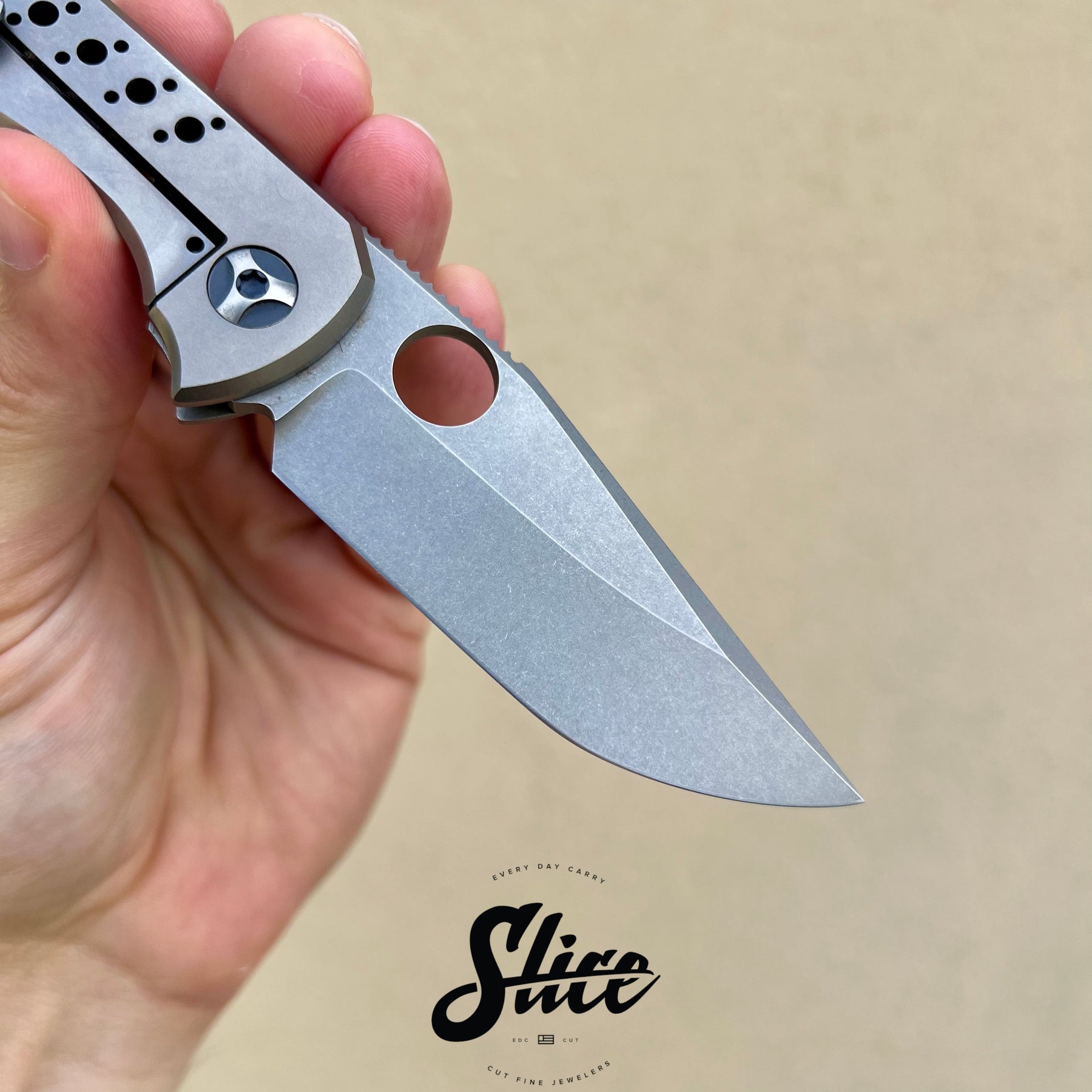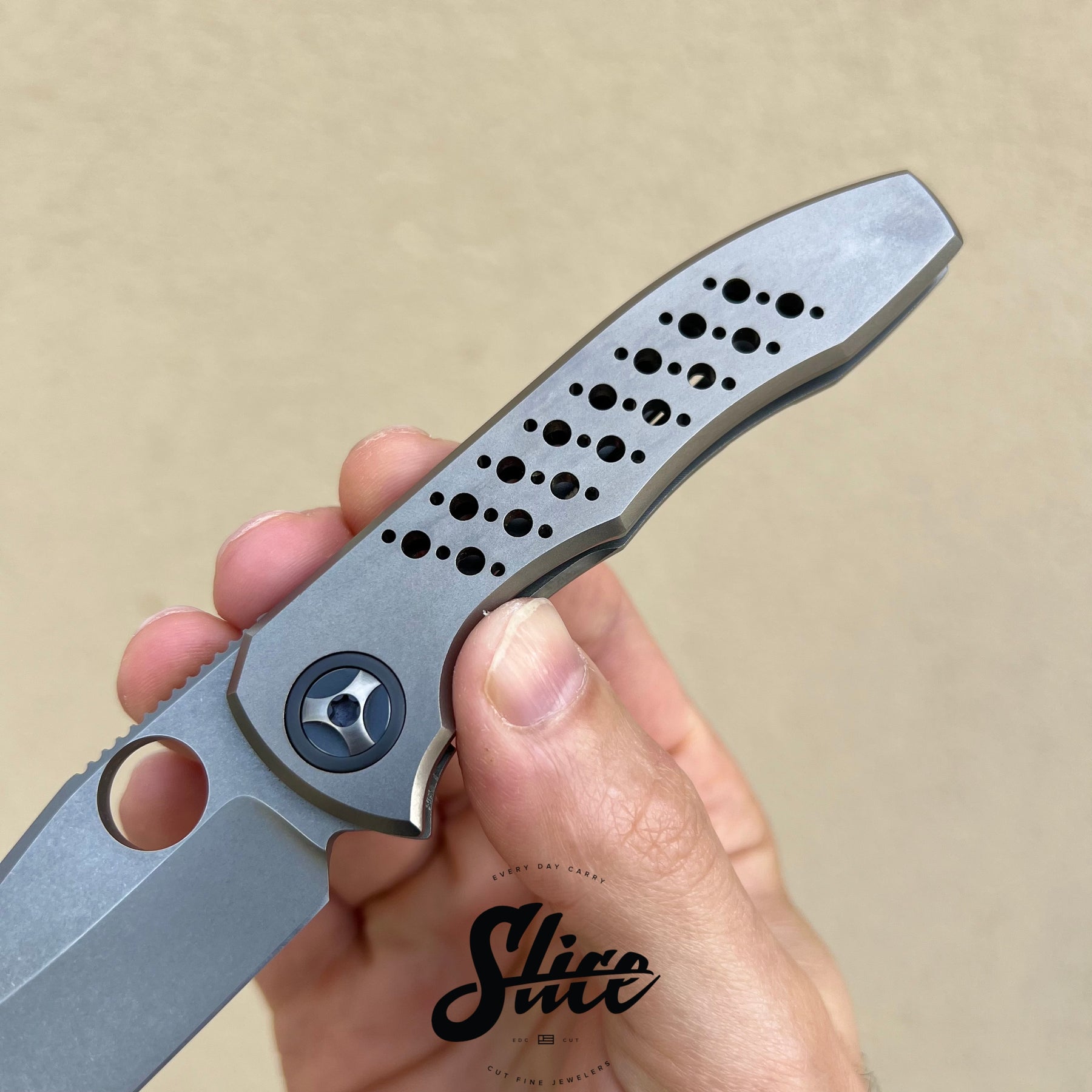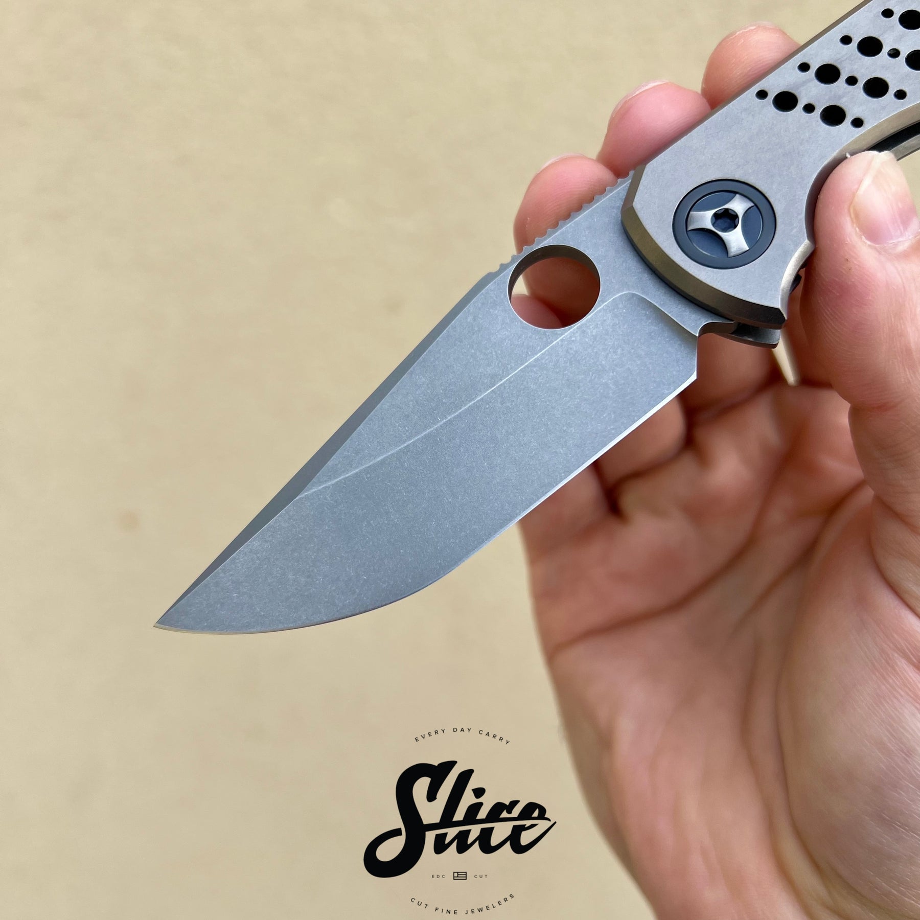 Peter Rassenti Nirvana 3.0 with a stonewash finished blade, full titanium integral handle crafted from a solid piece of titanium, matching titanium clip, and zirconium pivot collar.