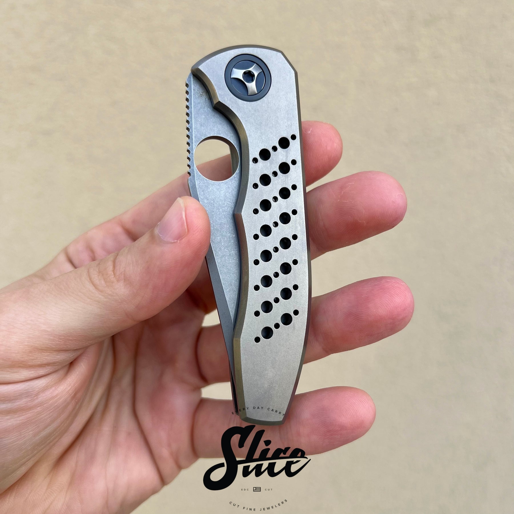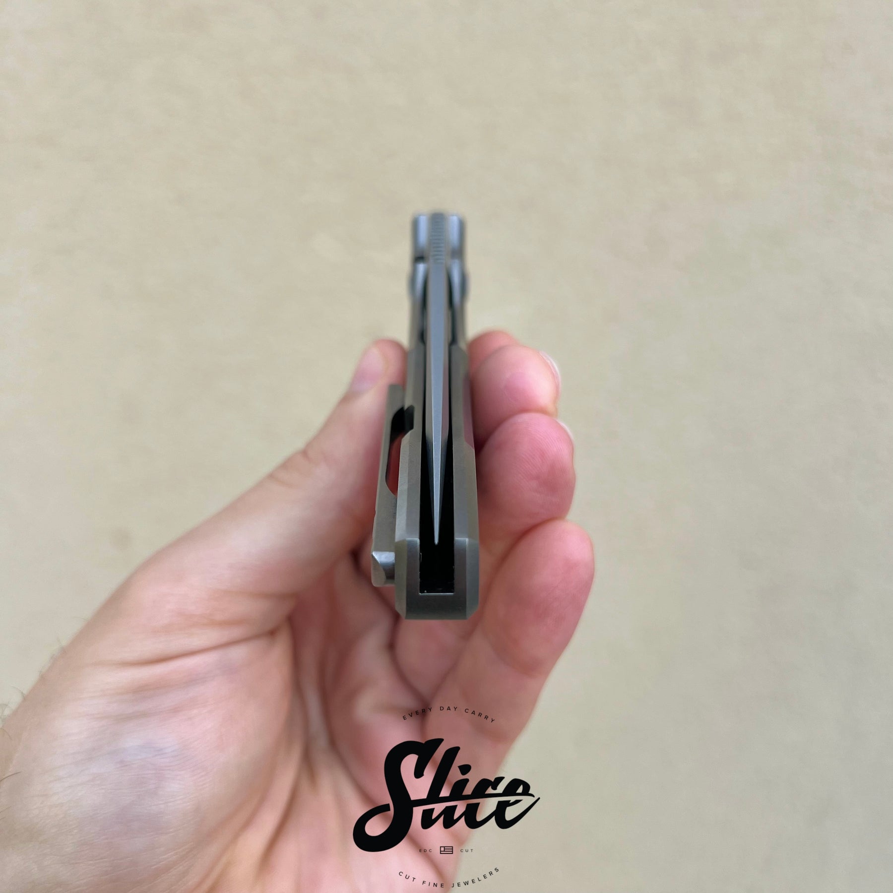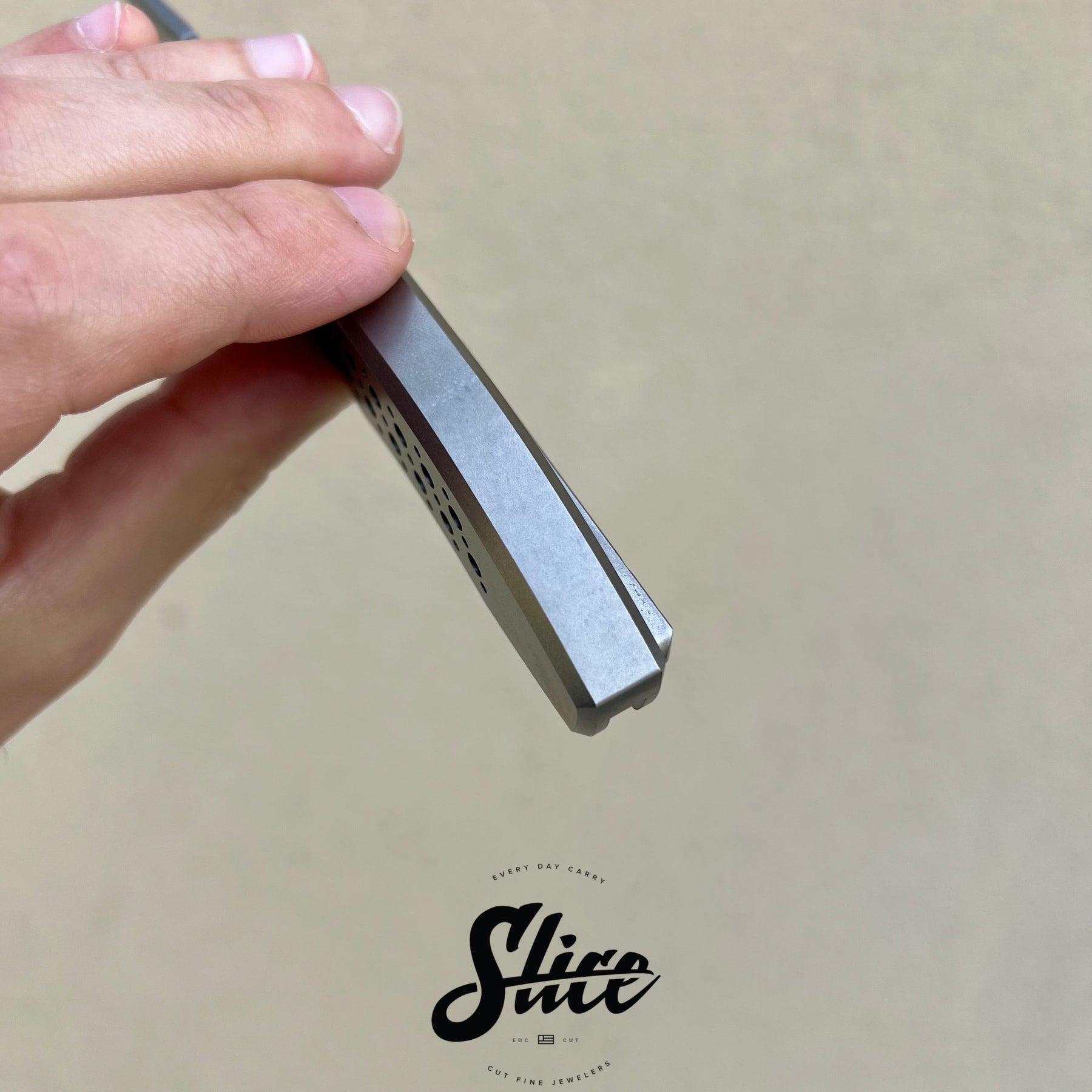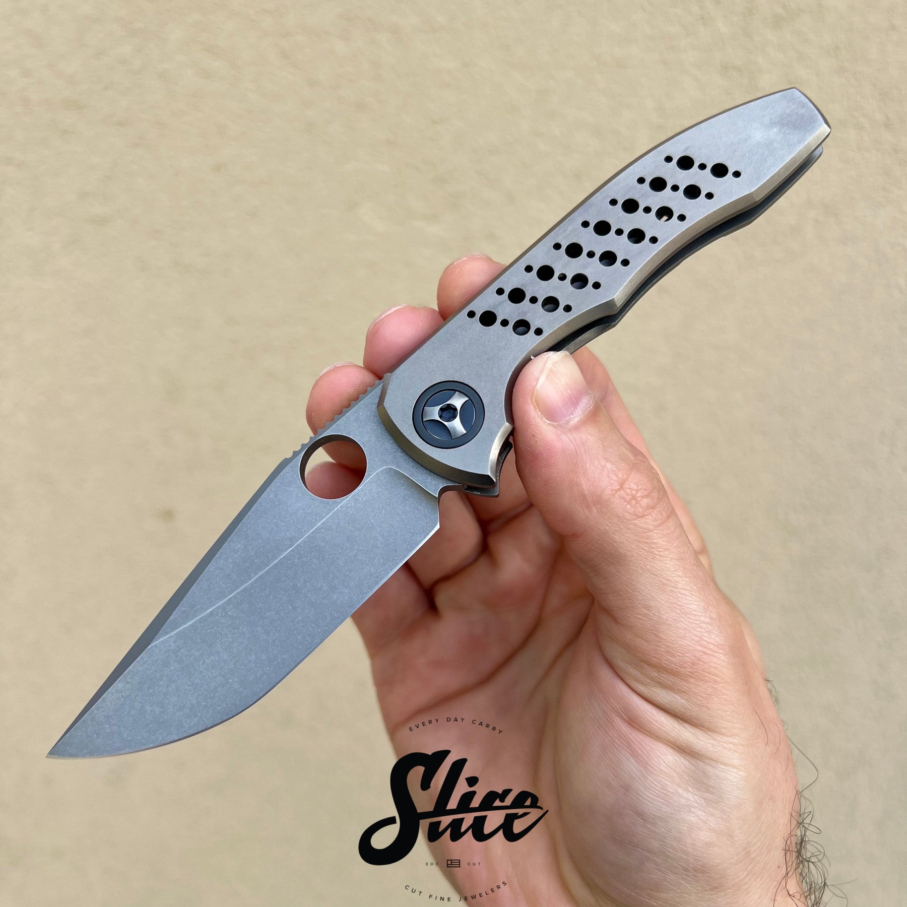 Peter Rassenti Nirvana 3.0 with a stonewash finished blade, full titanium integral handle crafted from a solid piece of titanium, matching titanium clip, and zirconium pivot collar.