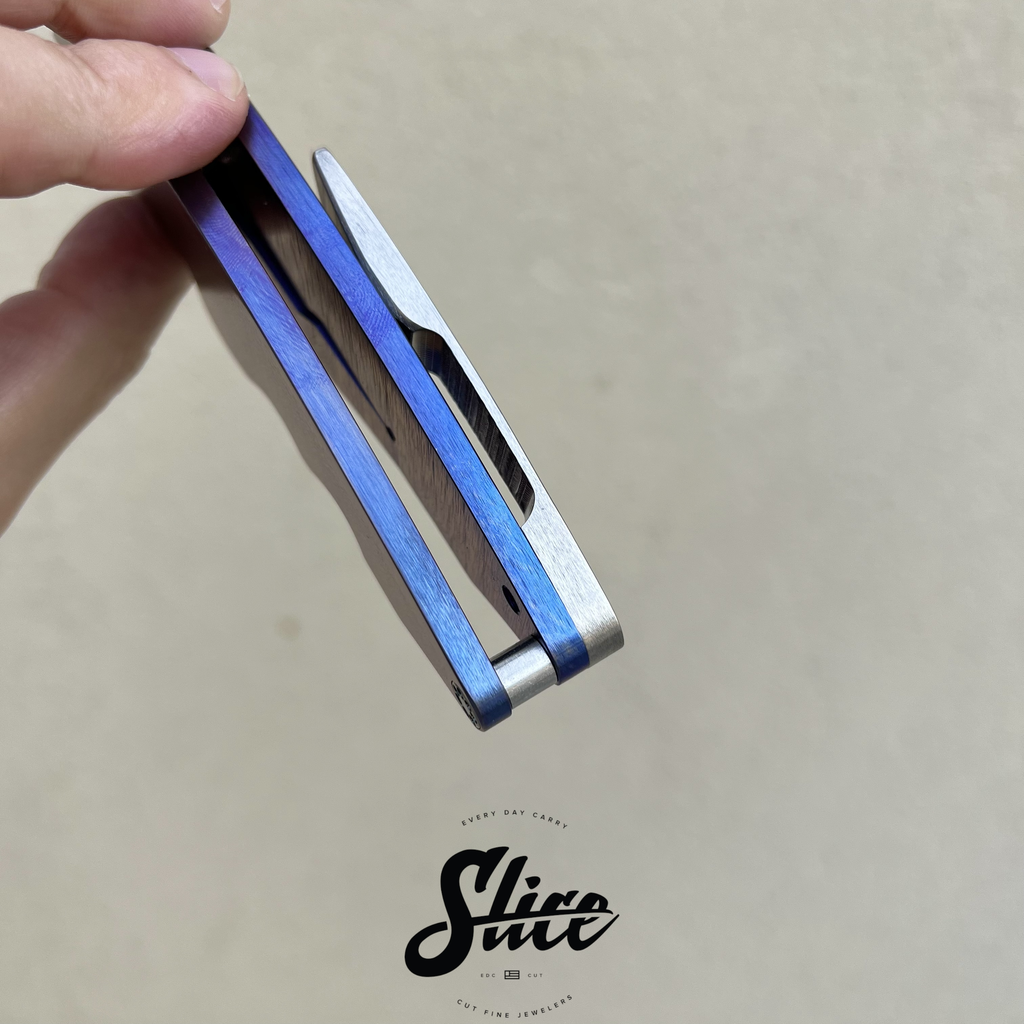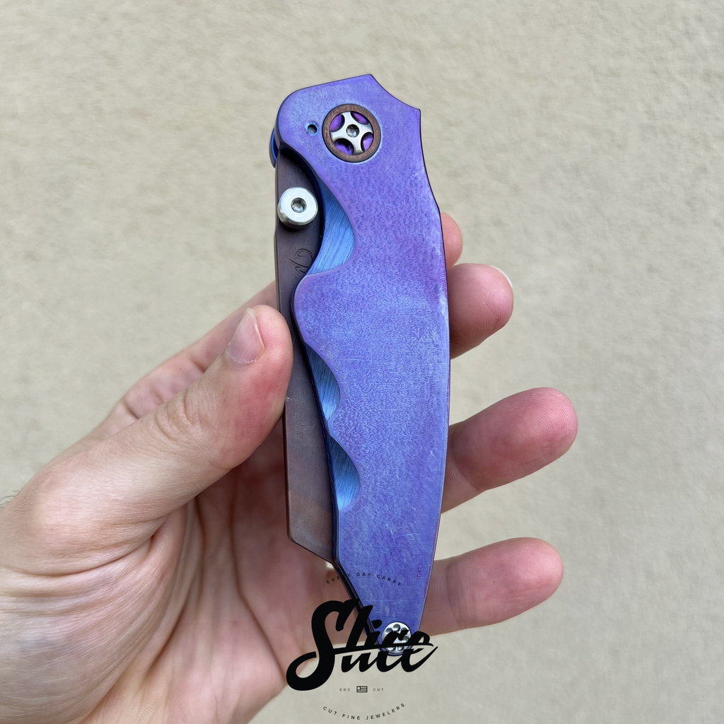 Scorpion 6 Knives Overfall EO with a Nitro-V blade and textured and anodized titanium handles with custom made titanium hardware.