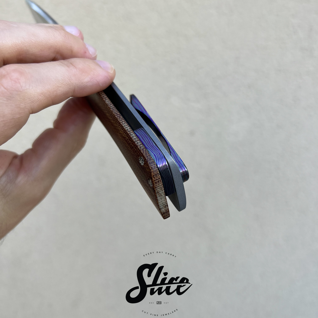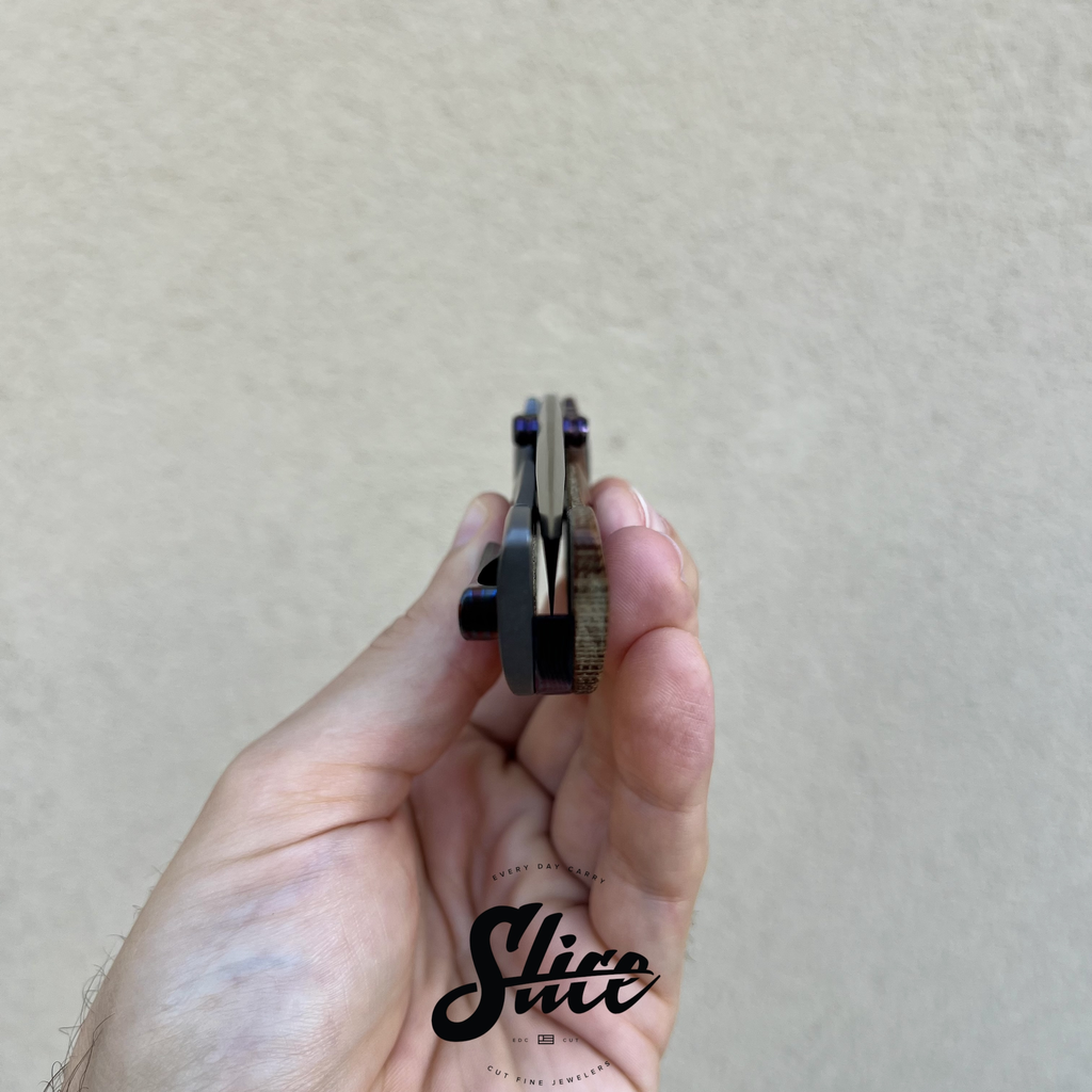 Scales/Handle: Crosscut micarta show scale, stonewashed titanium lockside