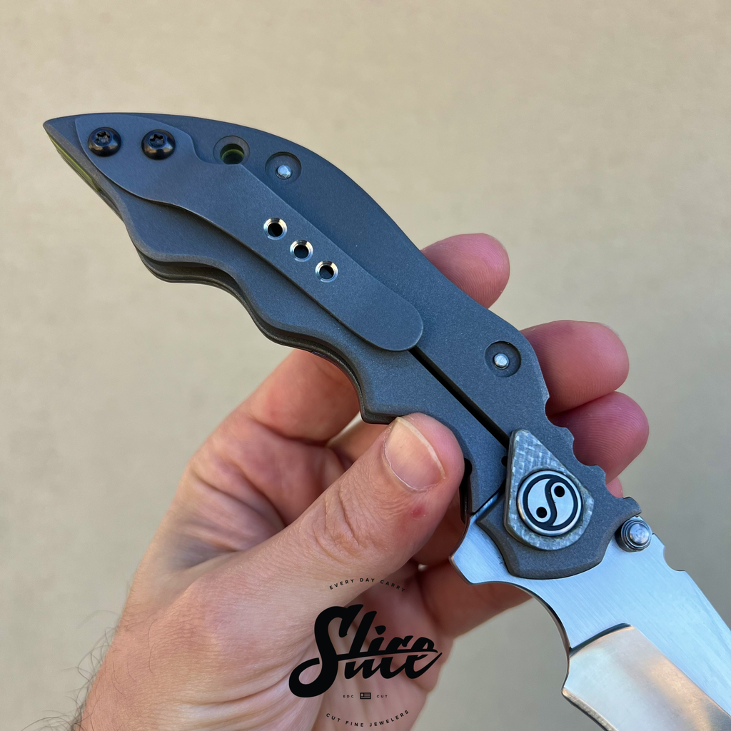 Scales/Handle: twill carbon fiber show scale, blasted titanioum lock side
